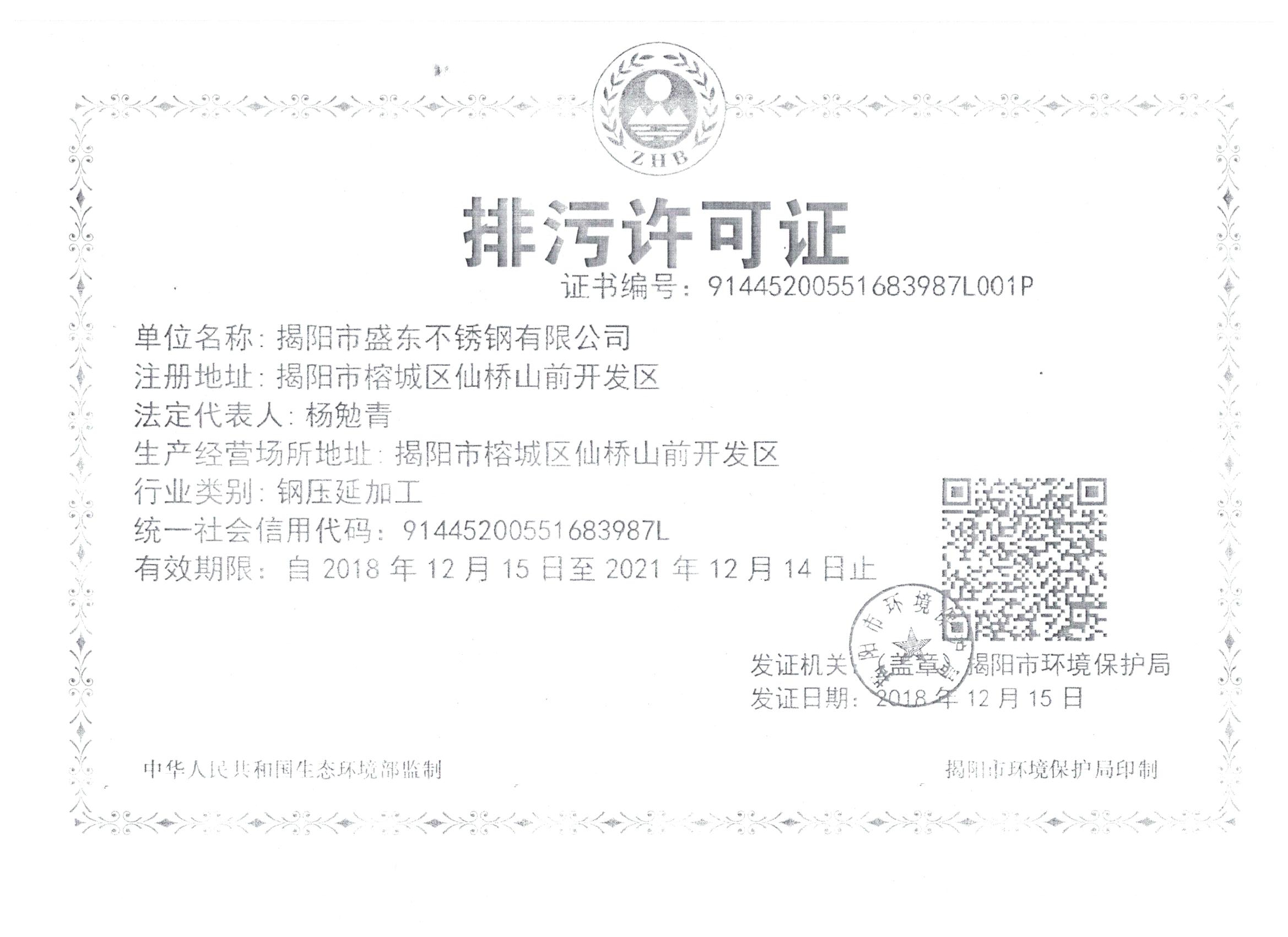 揭陽(yáng)市盛東不銹鋼有限公司環(huán)境信息公開(kāi)表